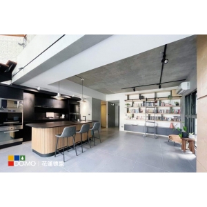 主要建材:奧地利EGGER E0 深壓紋門板、STONE ITALIANA 義大利石英石 皮紋面
