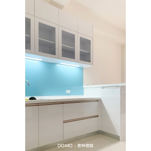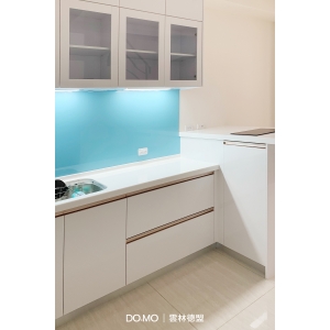 另外於中島採用明亮又活潑的設計,上廚的玻璃門不但方便找到物品、收納機能豐沛、也有鄉村風的活潑氣息。