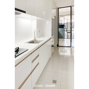 主要建材:霧化結晶鋼烤門板、韓國樂金LG人造大理石檯面、砂面玫瑰金鋁製把手