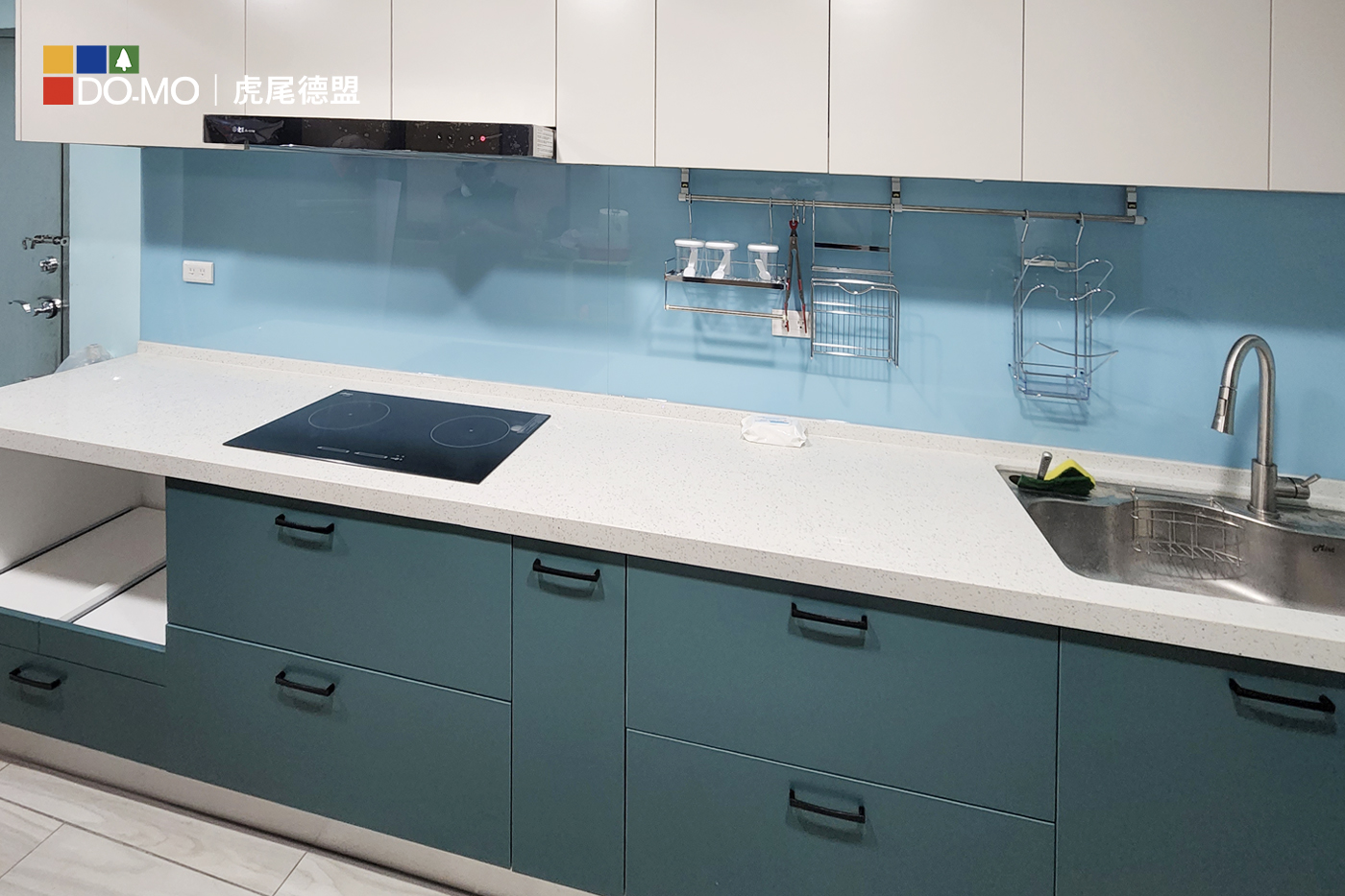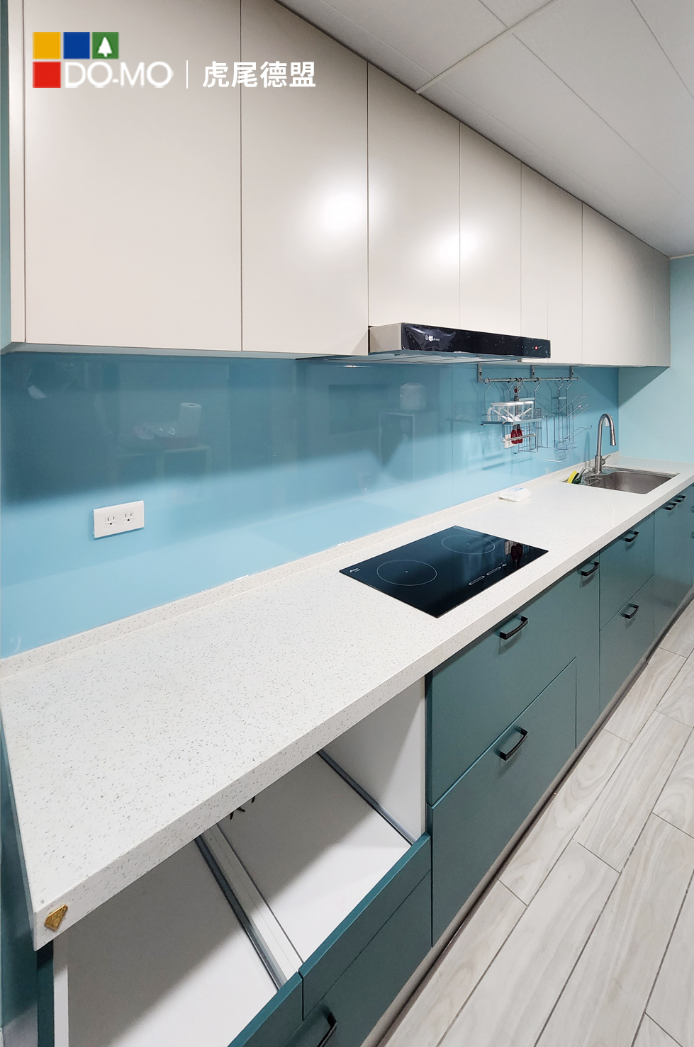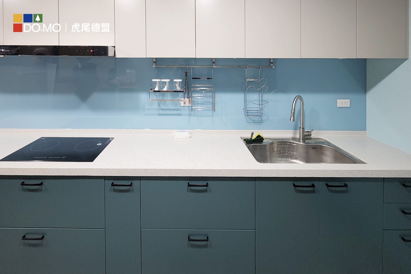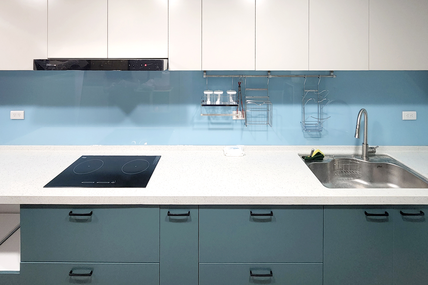簡約的設計搭配跳色櫃體,使廚房空間更具獨特風格。