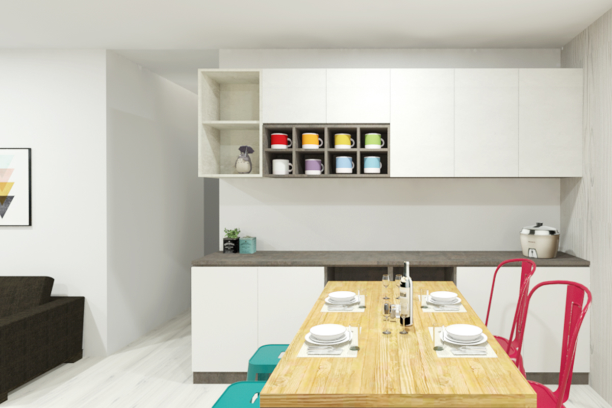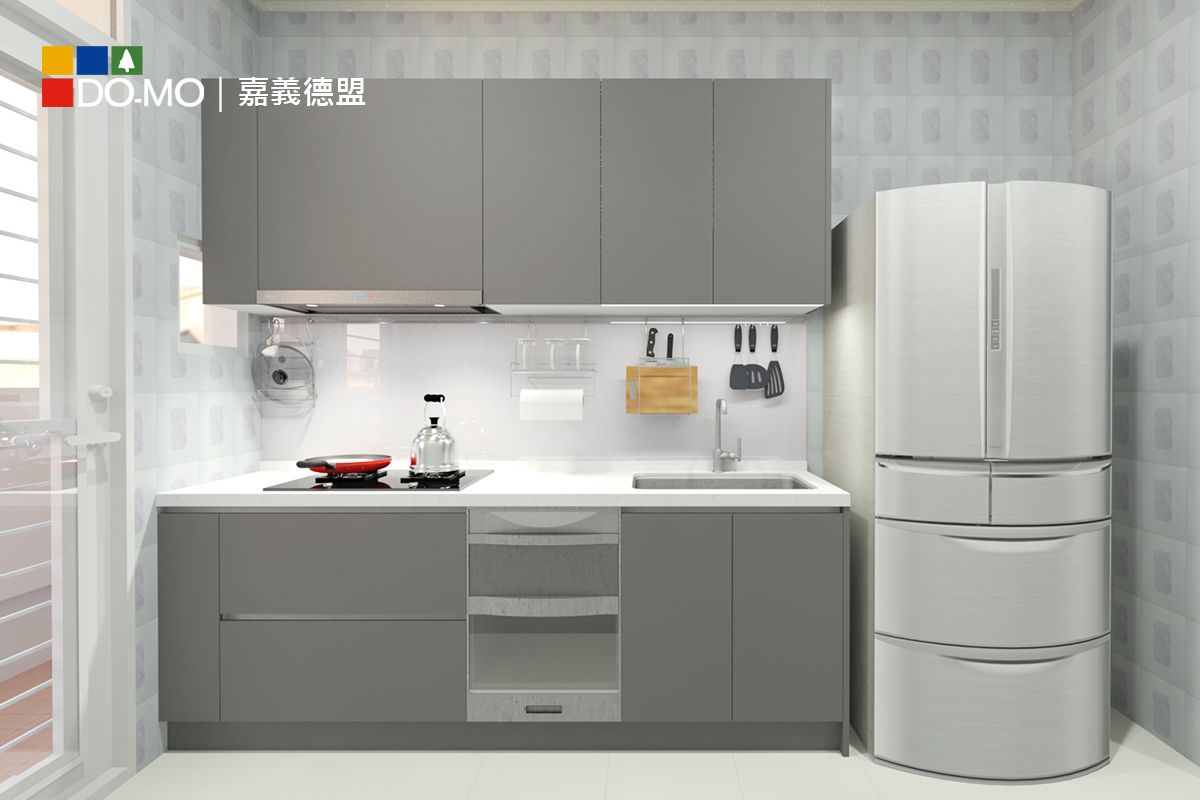 儘管廚具空間不算寬敞,但是備有必要設備和切菜區,還包括了烘碗機,更保留未來升級洗碗機的需求