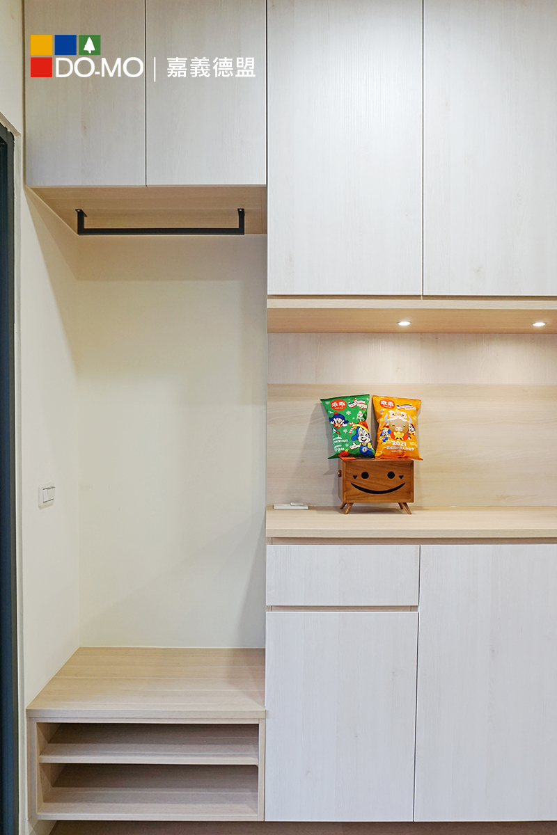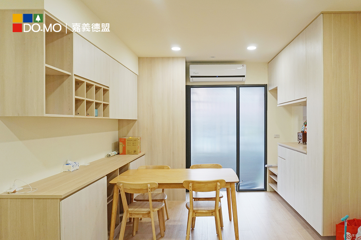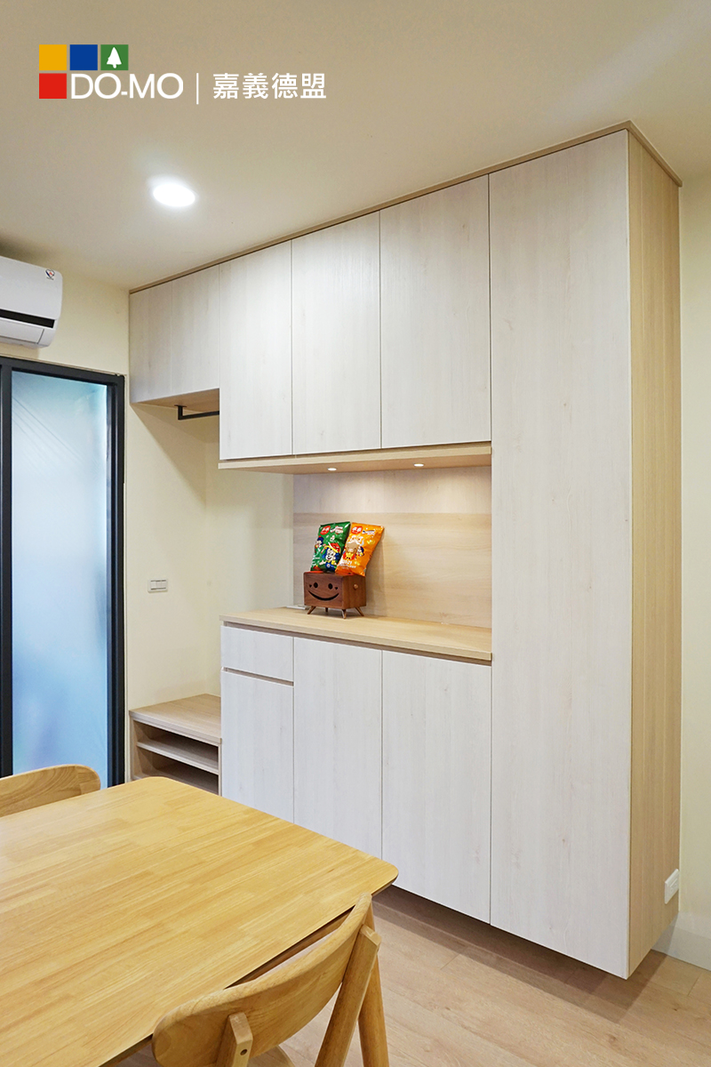 業主渴望營造家中溫馨的氛圍,因此在櫃體和門板的選擇上偏向淺色木紋,以展現溫暖的感覺。