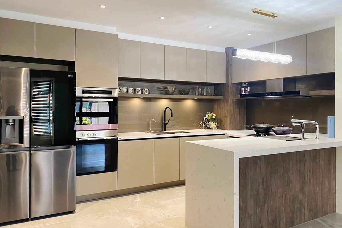 設計師為業主打造沈穩大器的餐廚空間,提升餐廚空間的整體質感。