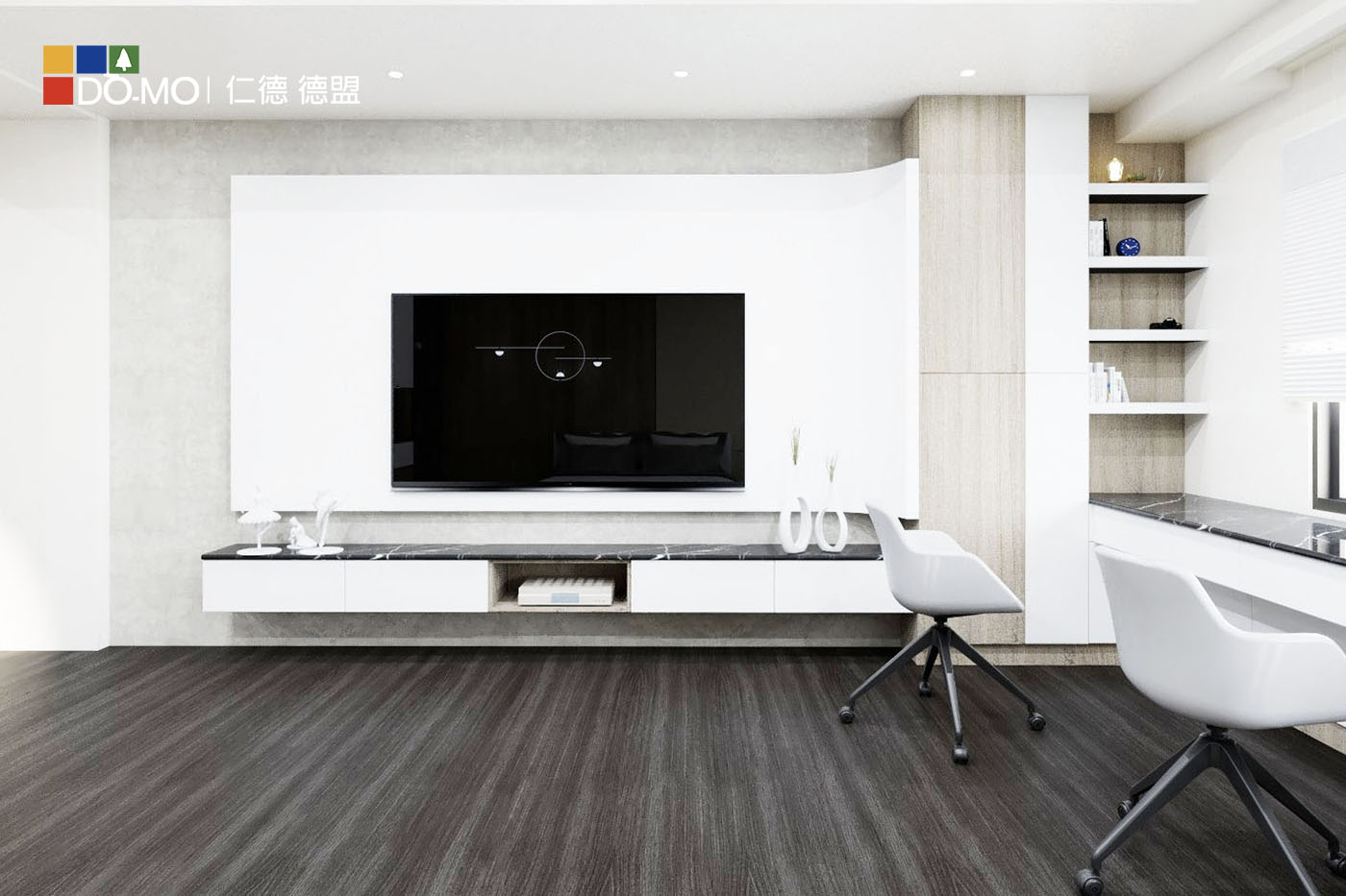 主要建材:EGGER-日本F1四星級塑合板、奧地利BLUM緩衝後鈕、木工、司曼特漆牆、格柵、可樂石薄板、金屬鐵件、超耐磨木地板、裝飾線板
