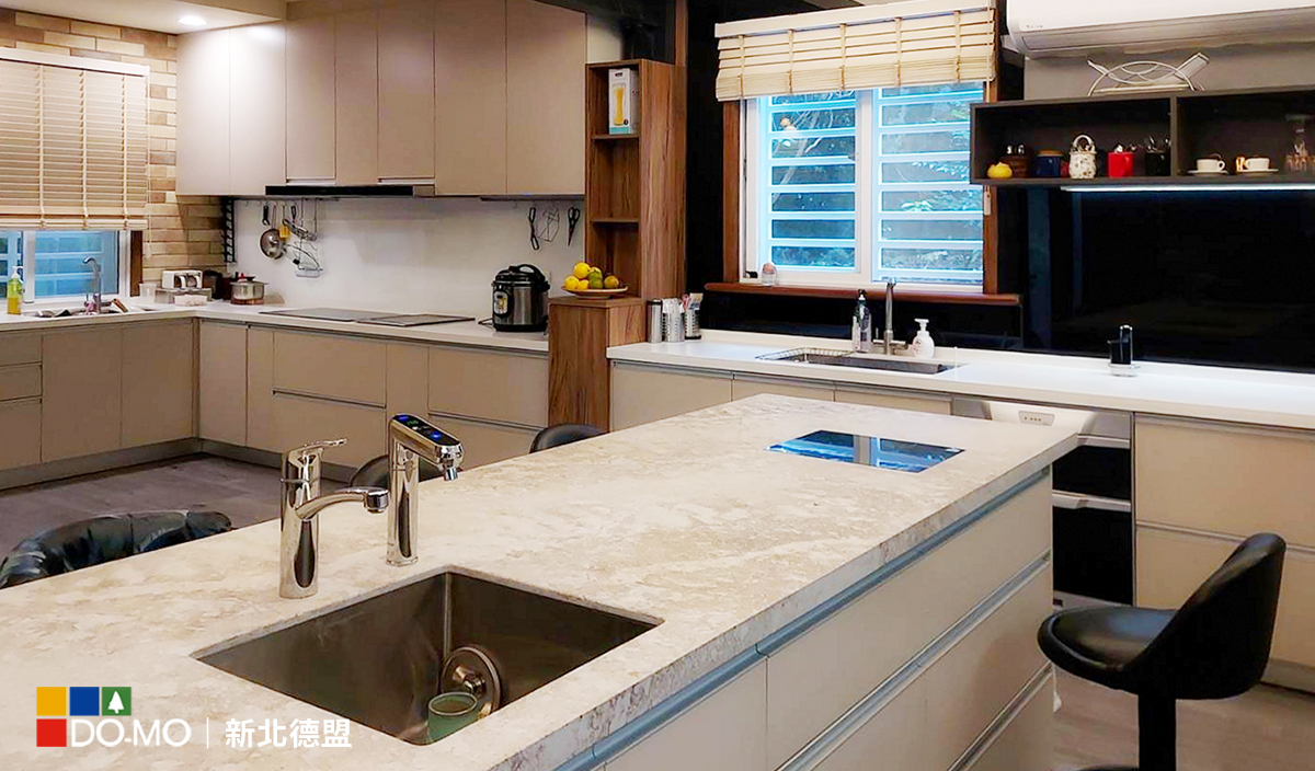 主要建材:石英石檯面、霧面結晶鋼烤門板
