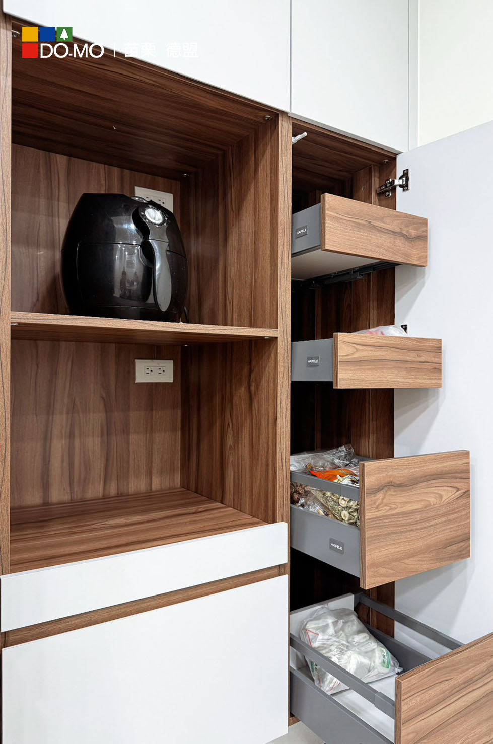 上櫃大面留白延伸空間感,搭配開放電器櫃設計讓空間更整齊一致。
